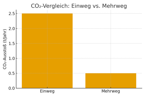 Daraus resultiert – abhängig vom Einsatzbereich und den Reinigungsbedingungen – eine CO₂-Reduzierung von rund 2,0 Tonnen pro Jahr, was einer Einsparung von etwa 80 % gegenüber Einwegmüllbeuteln entspricht.