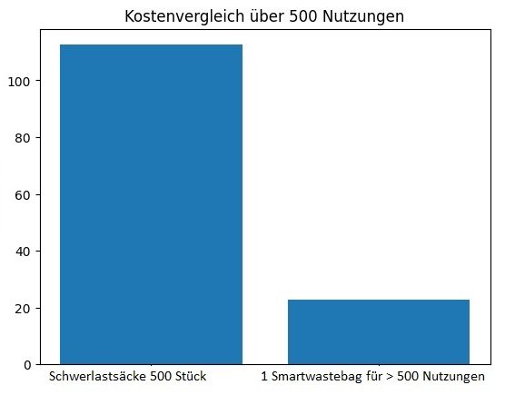 - Bei 500 Nutzungen würden Einweg-Säcke kosten: 500 x 0,225 € = 112,50 €.