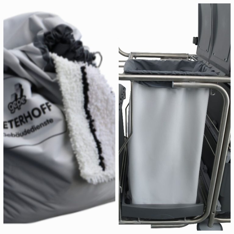 Unsere wasserdichten Transportbeutel mit praktischem Zugband-Verschluss ersetzen dauerhaft die umweltschädlichen blauen Säcke – effizient, hygienisch und nachhaltig.